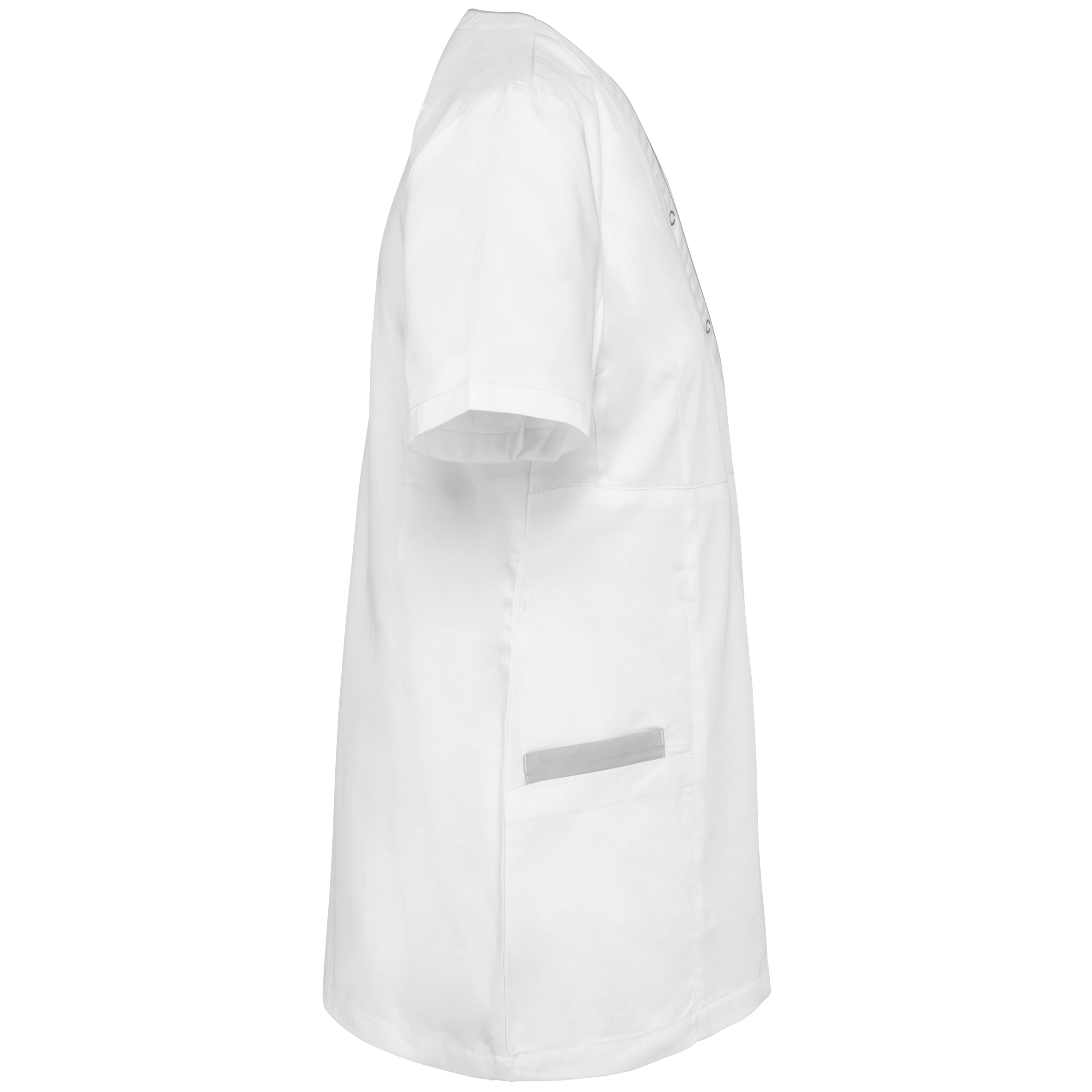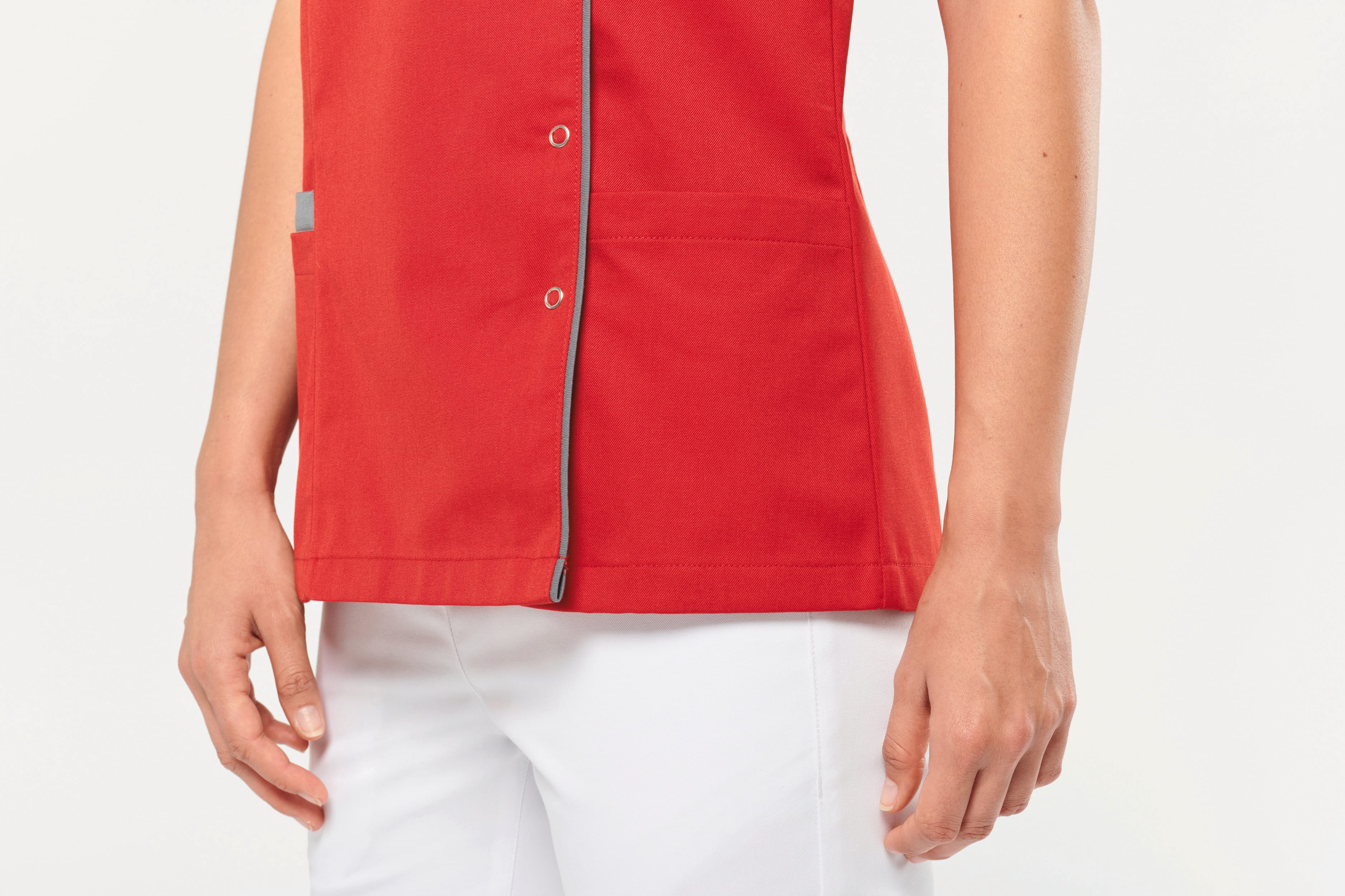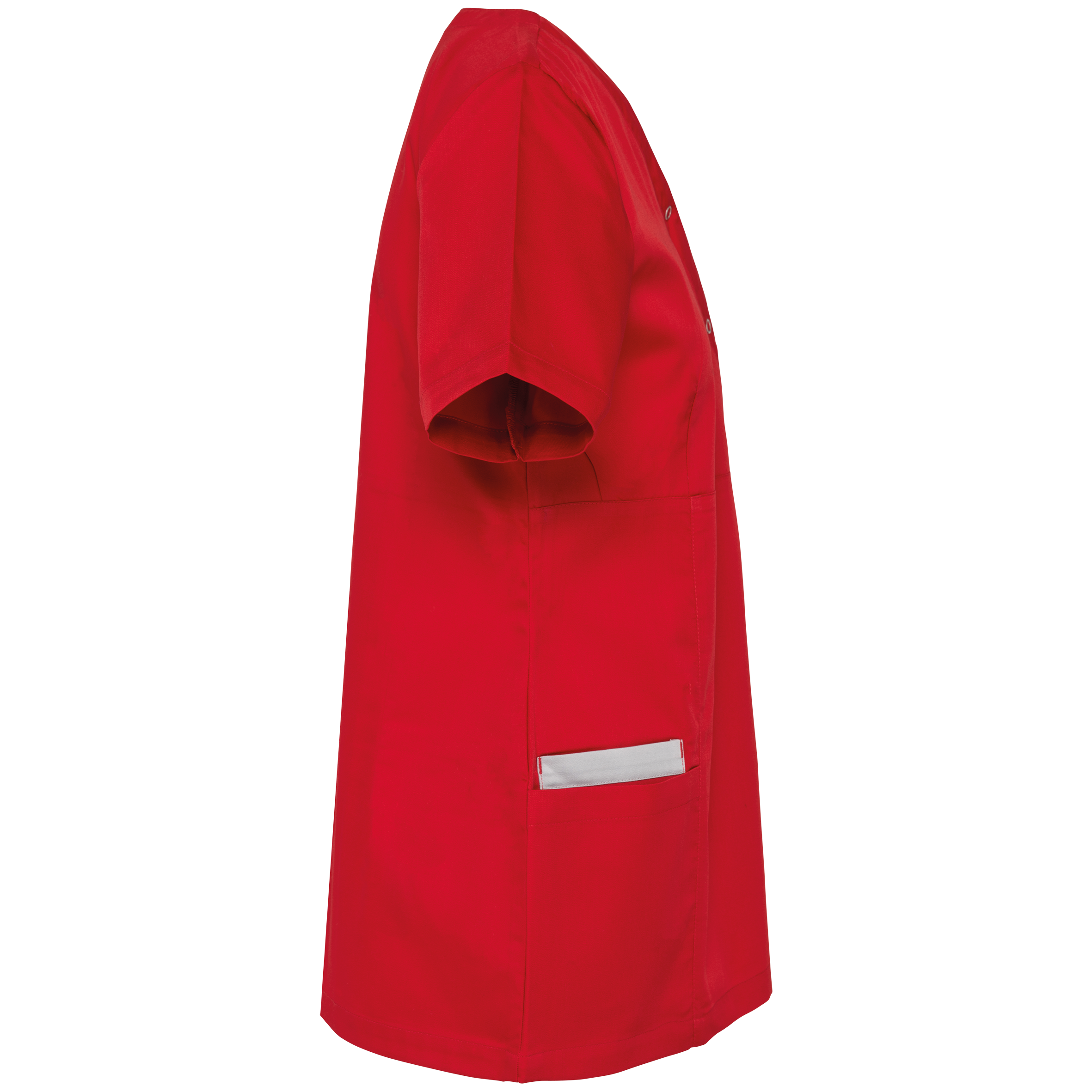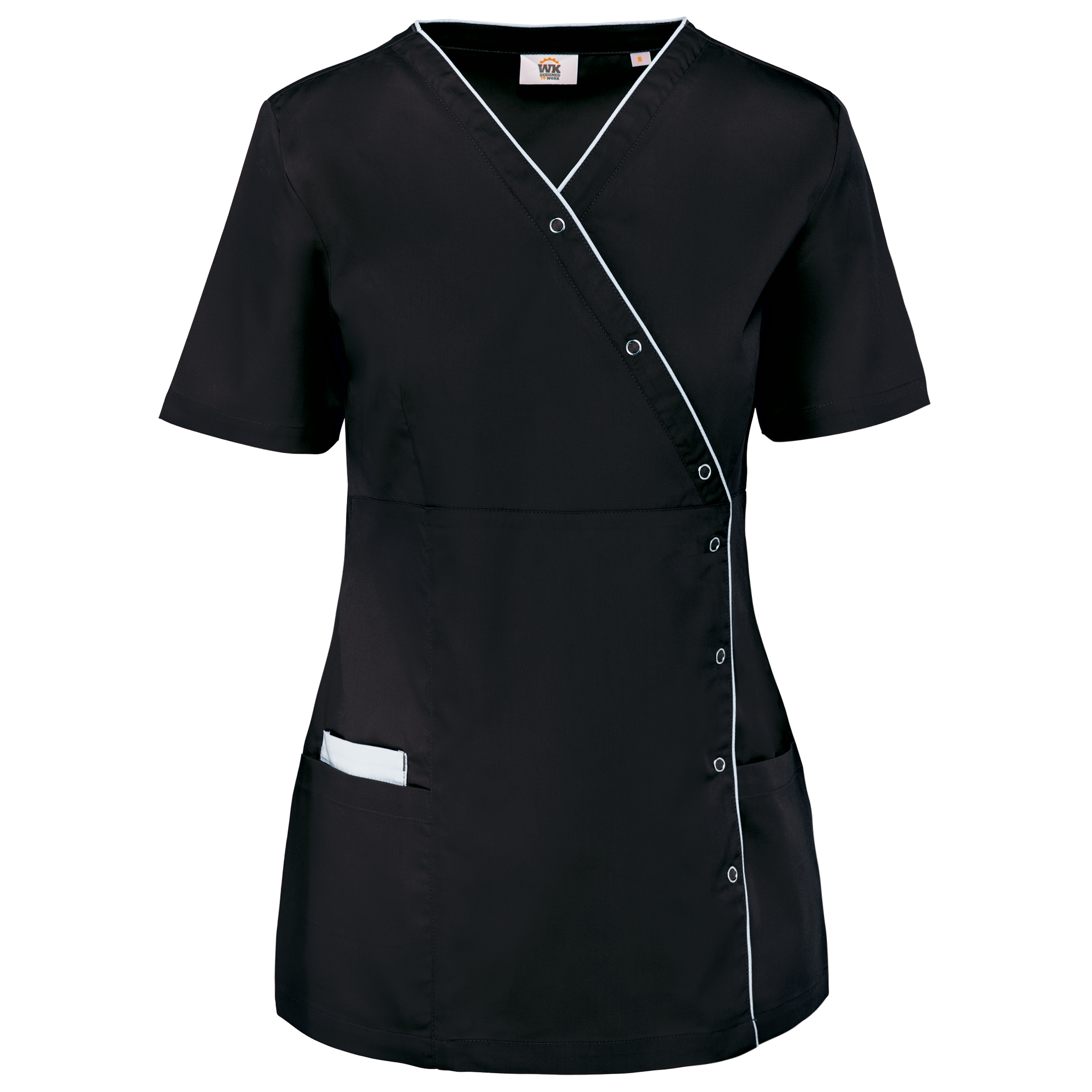 | Description | 65% polyester / 35% coton. Tissu twill polycoton. Lavage à 60°C. Coupe droite grâce à des pinces devant et dos pour une coupe plus féminine. Encolure en V, Fermeture asymétrique par bouton-press |